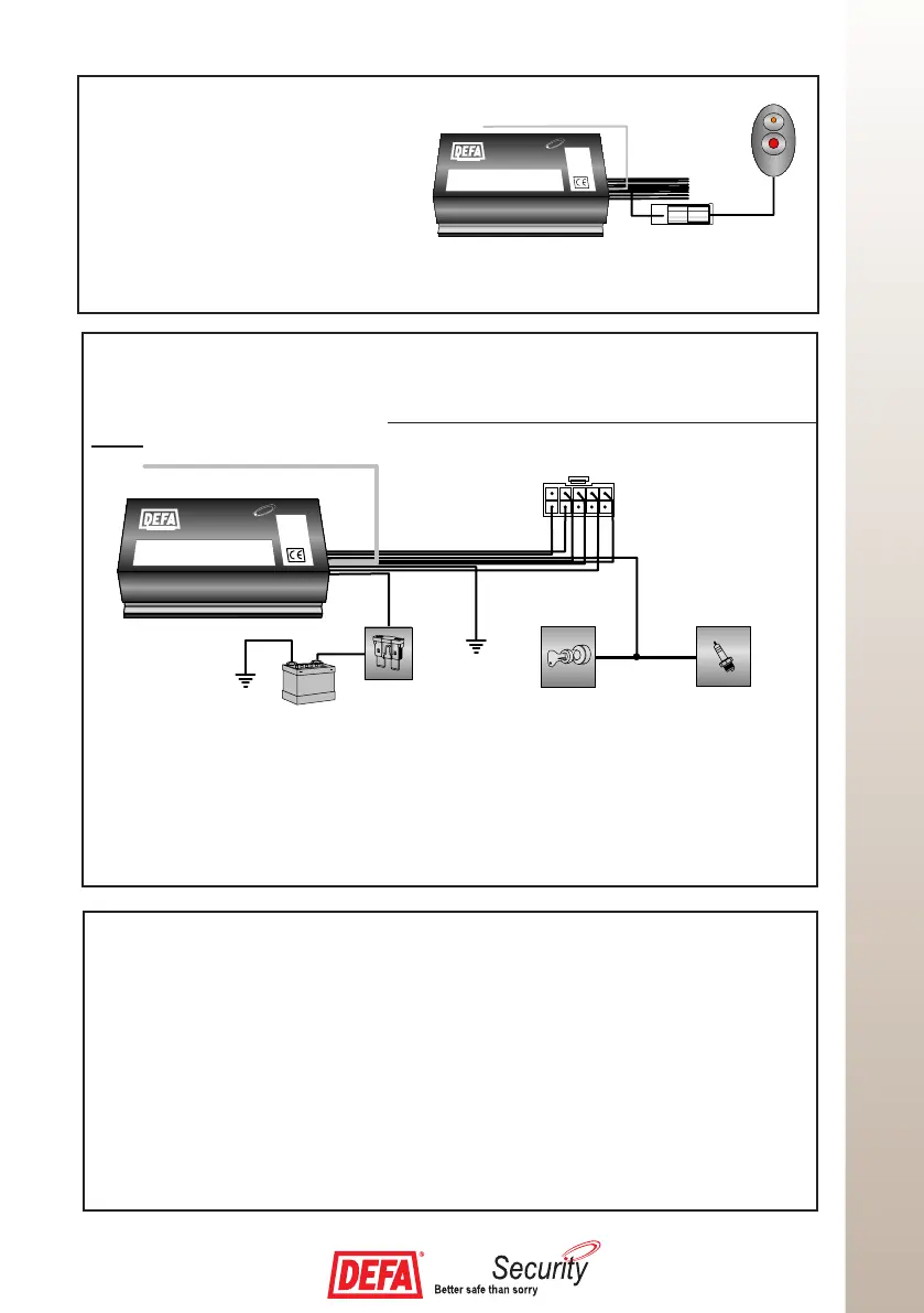 Vaihtoehtoisesti käynnistysmoottorin plus-kaapeliin sulakkeen (1 A) kautta. (Kytkettäessä päävir-