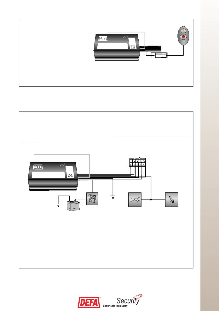 startmotor via säkring på 1A. (Vid inkoppling av plus på startmotor kommer lysdioden till