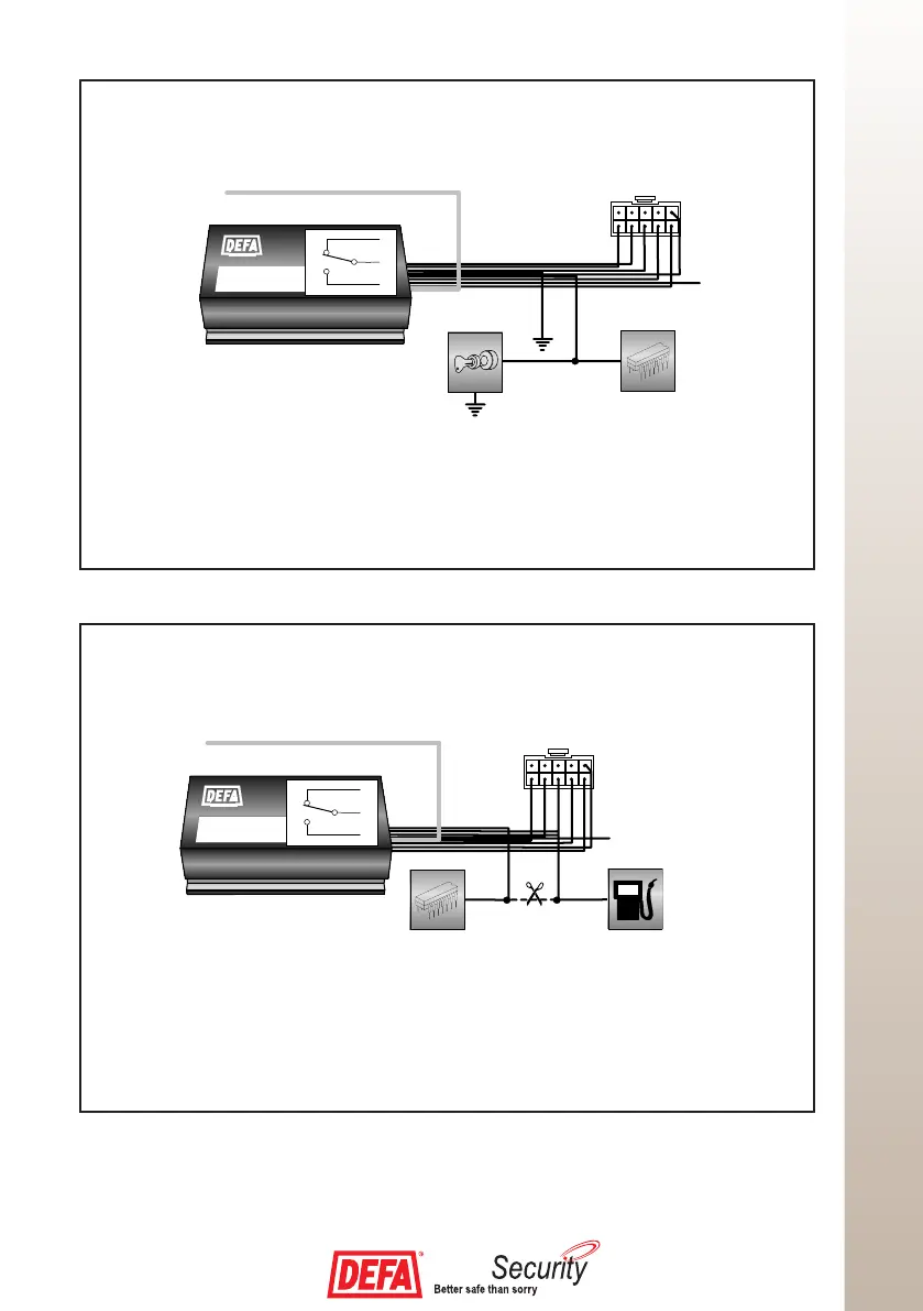 Svart ledning märkt 7 från stöldskyddet ansluts till änden som matar bränslepumpen.