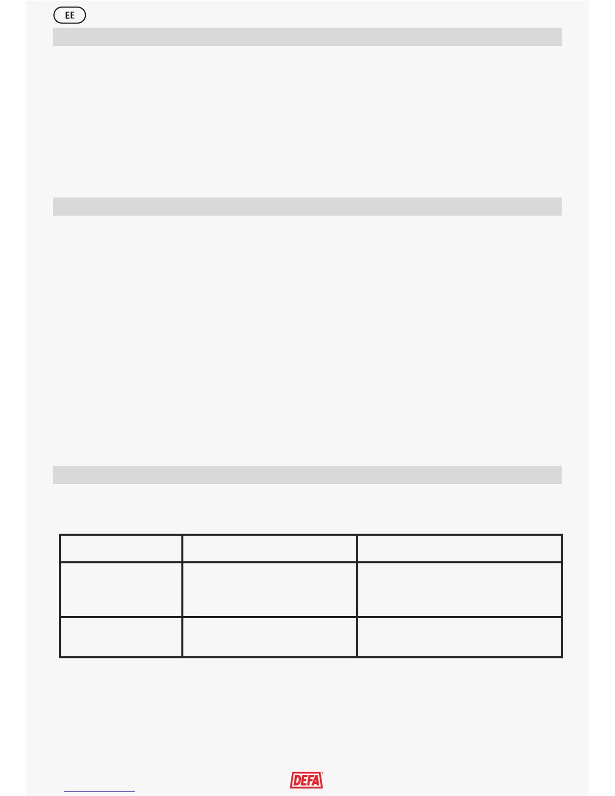 enne volitatud DEFA edasimüüja poole pöördumist järgnevat veaotsingu tabelit.