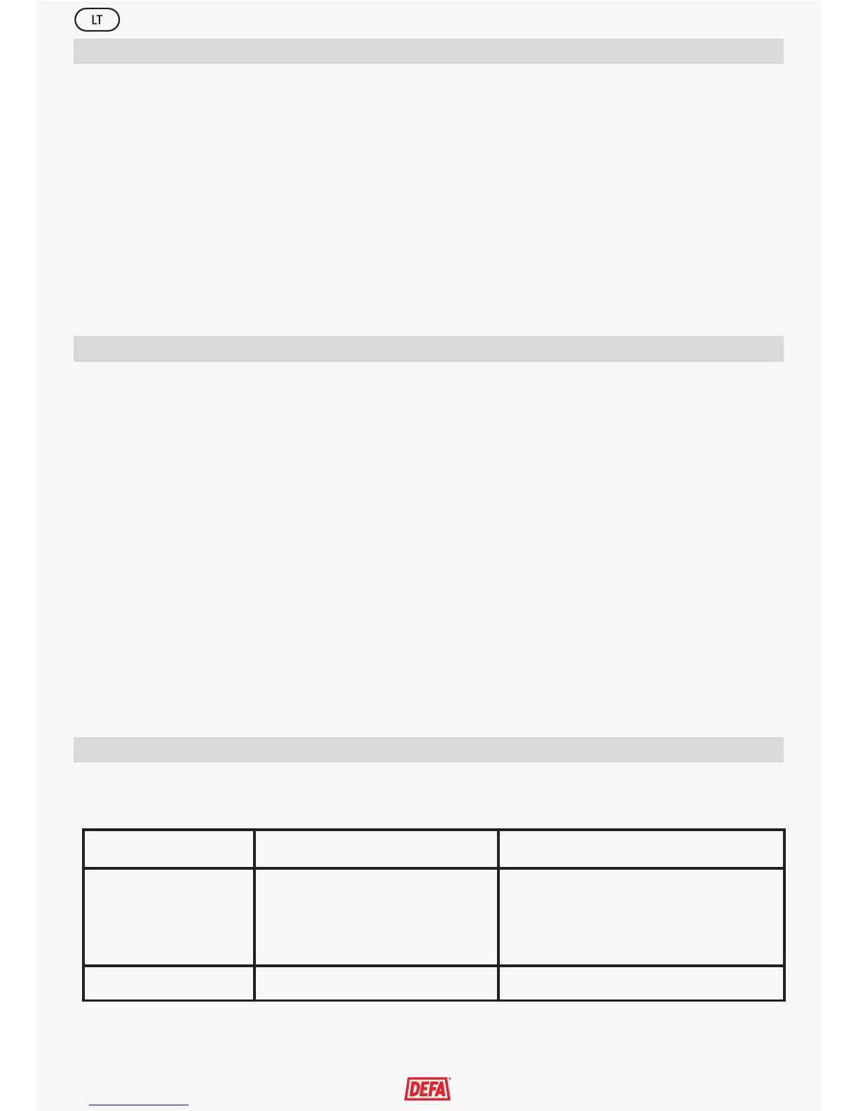 prieš kreipiantis į autorizuotas DEFA remonto dirbtuves, paskaitykite patarimų lentelę.