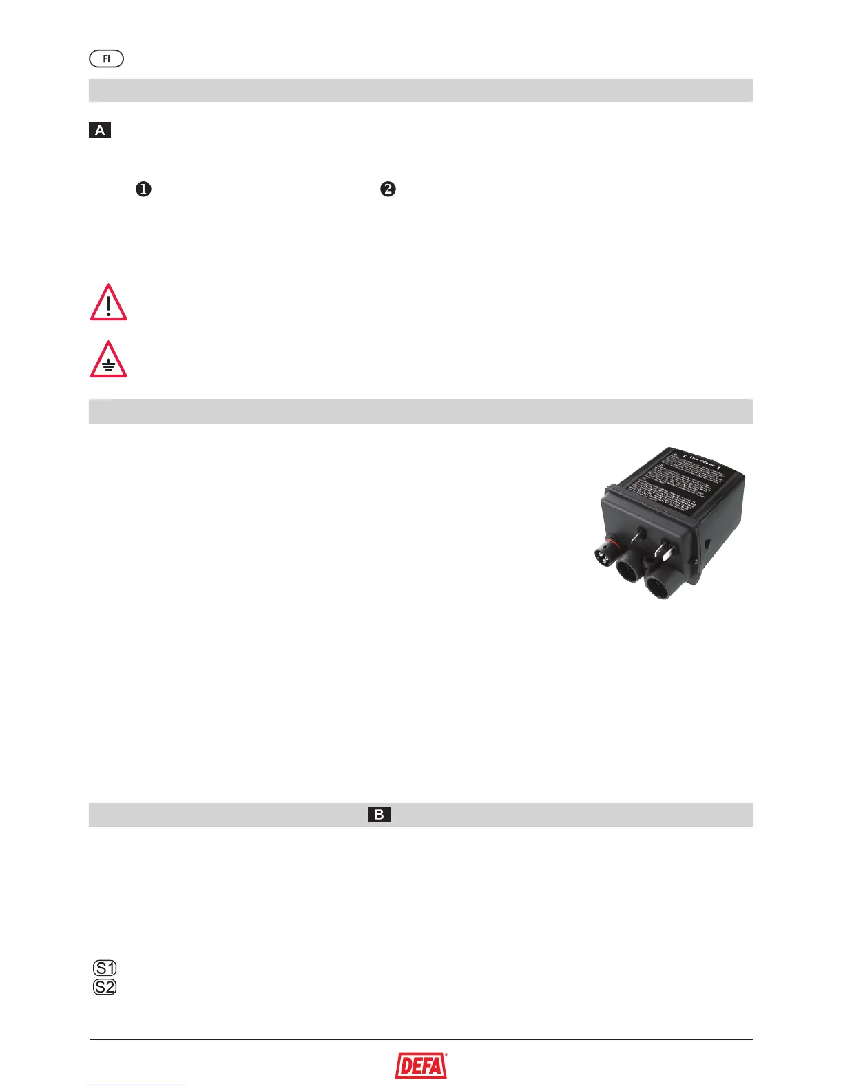 käyttää vain DEFAn alkuperäisiä kytkentätarvikkeita. Laturi on asennettava siten, että liittimet