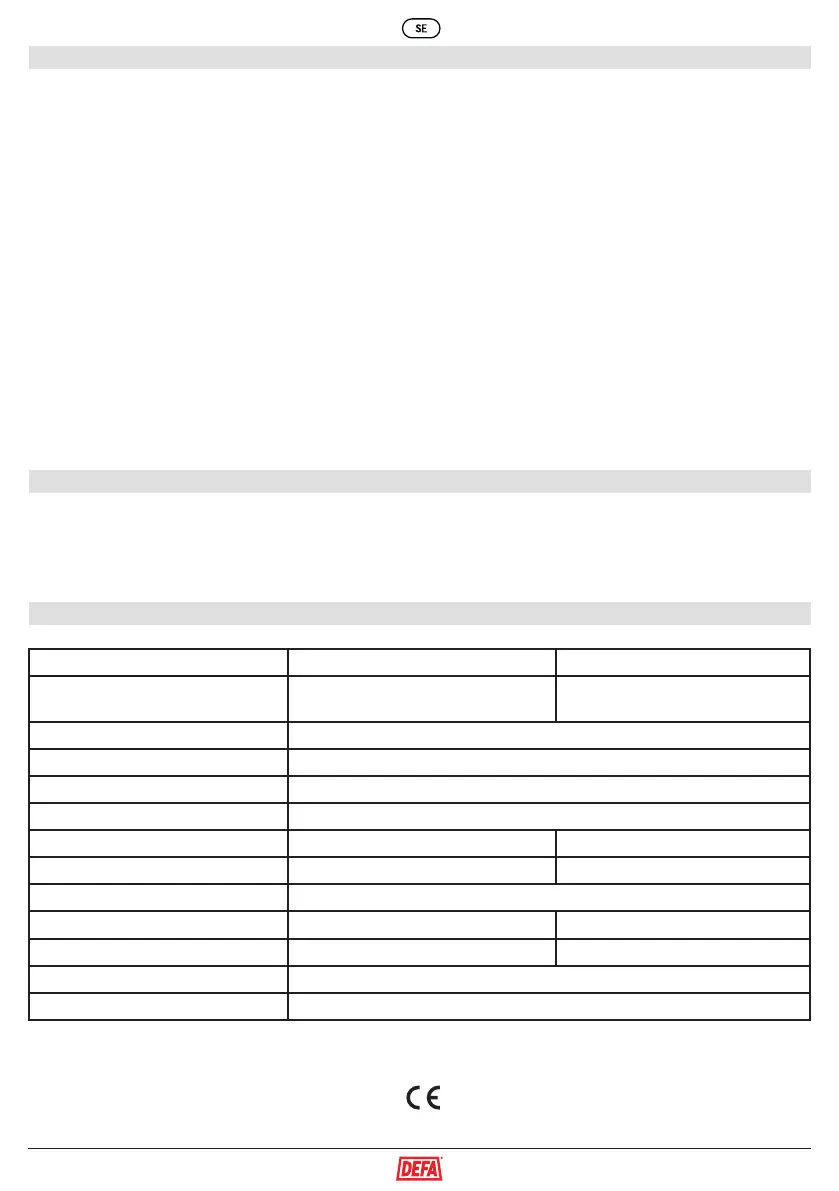 än DEFA AS eller någon av deras auktoriserade representanter. DEFA AS lämnar ingen annan garanti än denna och ansvarar inte för