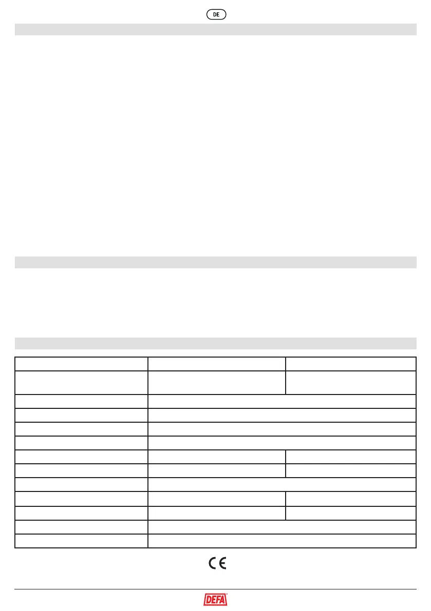 Garantie auf Funktions- und Materialfehler und übernimmt keine anderen Kosten als die genannten. DEFA haftet nicht für eventuell