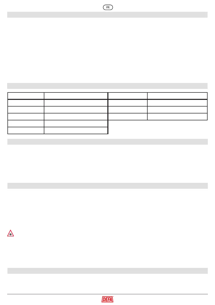 En cas de doute concernant le montage de l’équipement, veuillez contacter DEFA, un distributeur DEFA ou un installateur agréé.