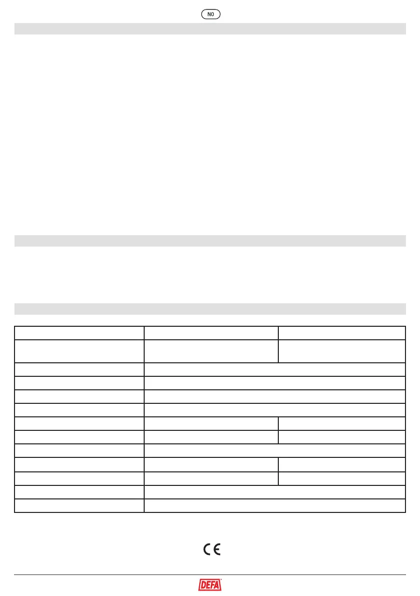 uaktsomt, åpnet eller reparert av en annen enn DEFA AS eller av deres autoriserte representanter. Garantien gjelder kun feil på selve