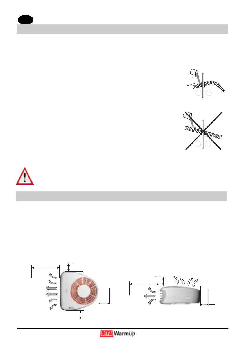 must be mounted so as to satisfy the requirements for free space around the heater. The