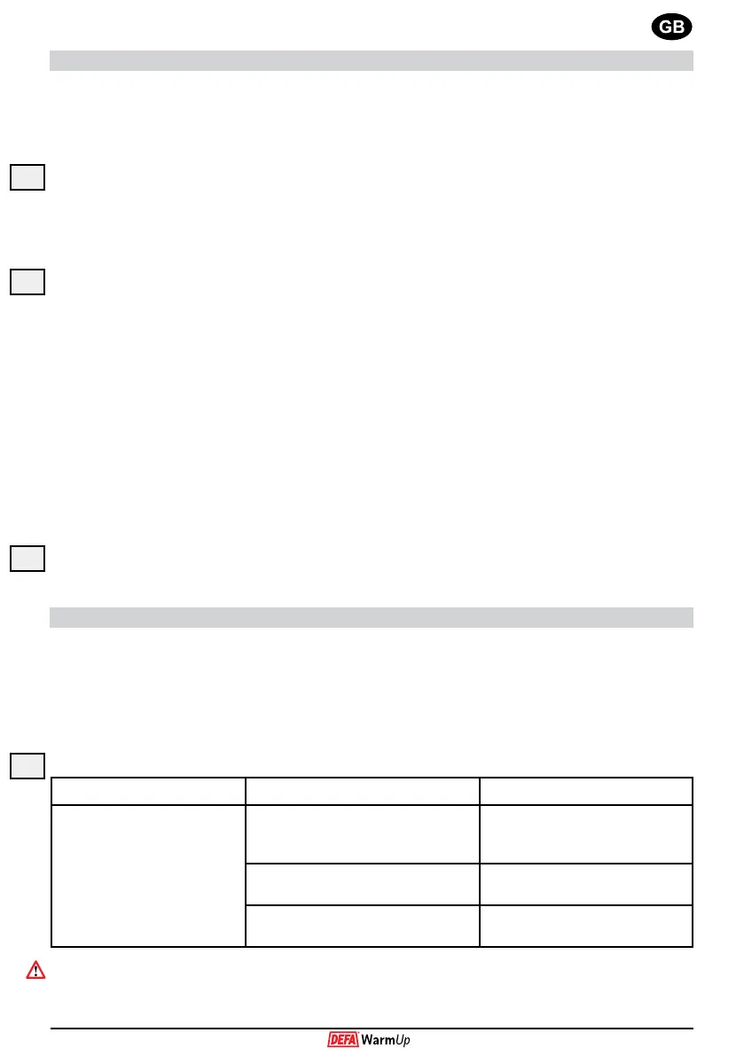 The tables below indicate reason and corrective measure for faults that may occur on a DEFA WarmUp.