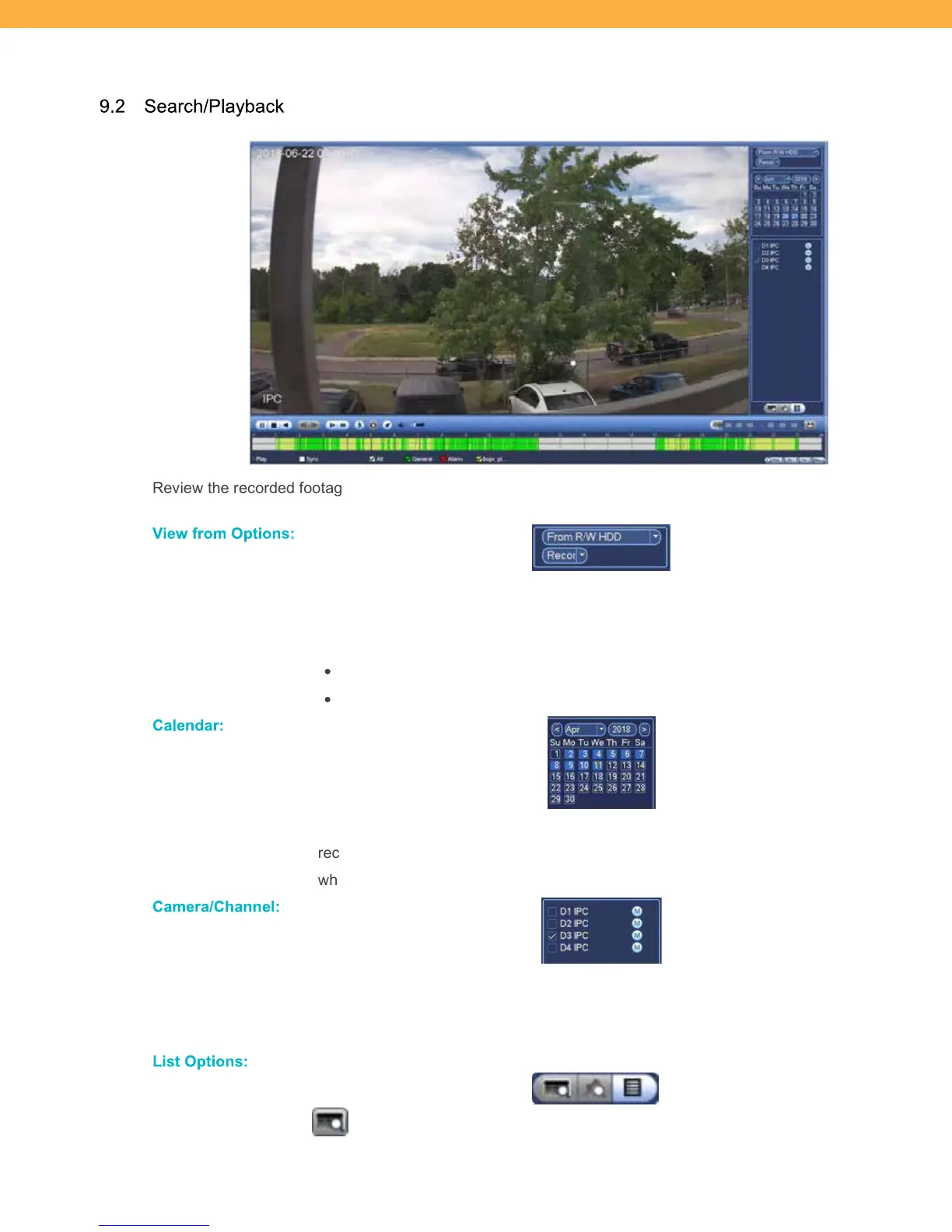 recorded footage blocks will appear in the Playback Bar below. Dates are bolded