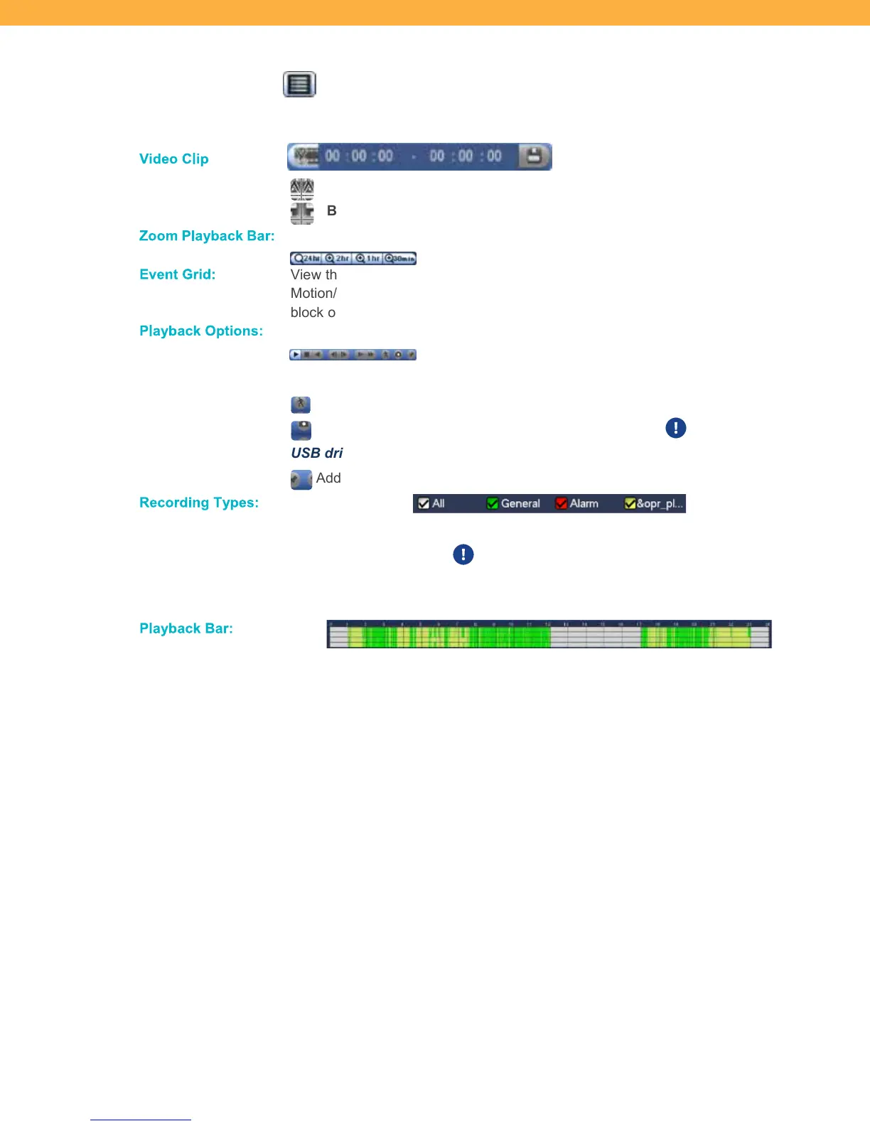 Click the checkboxes to show/hide recorded footage by type. When selected, the