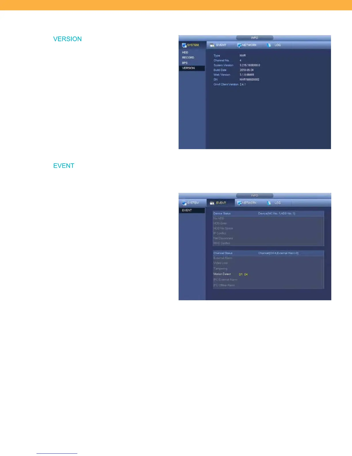 Shows all system events (example: Motion