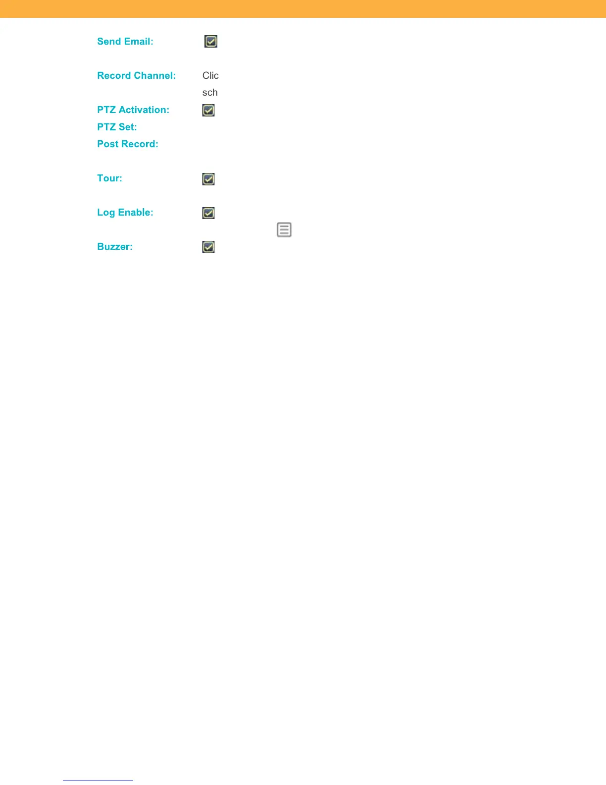 Click to select the PTZ actions for each Channel (Camera).