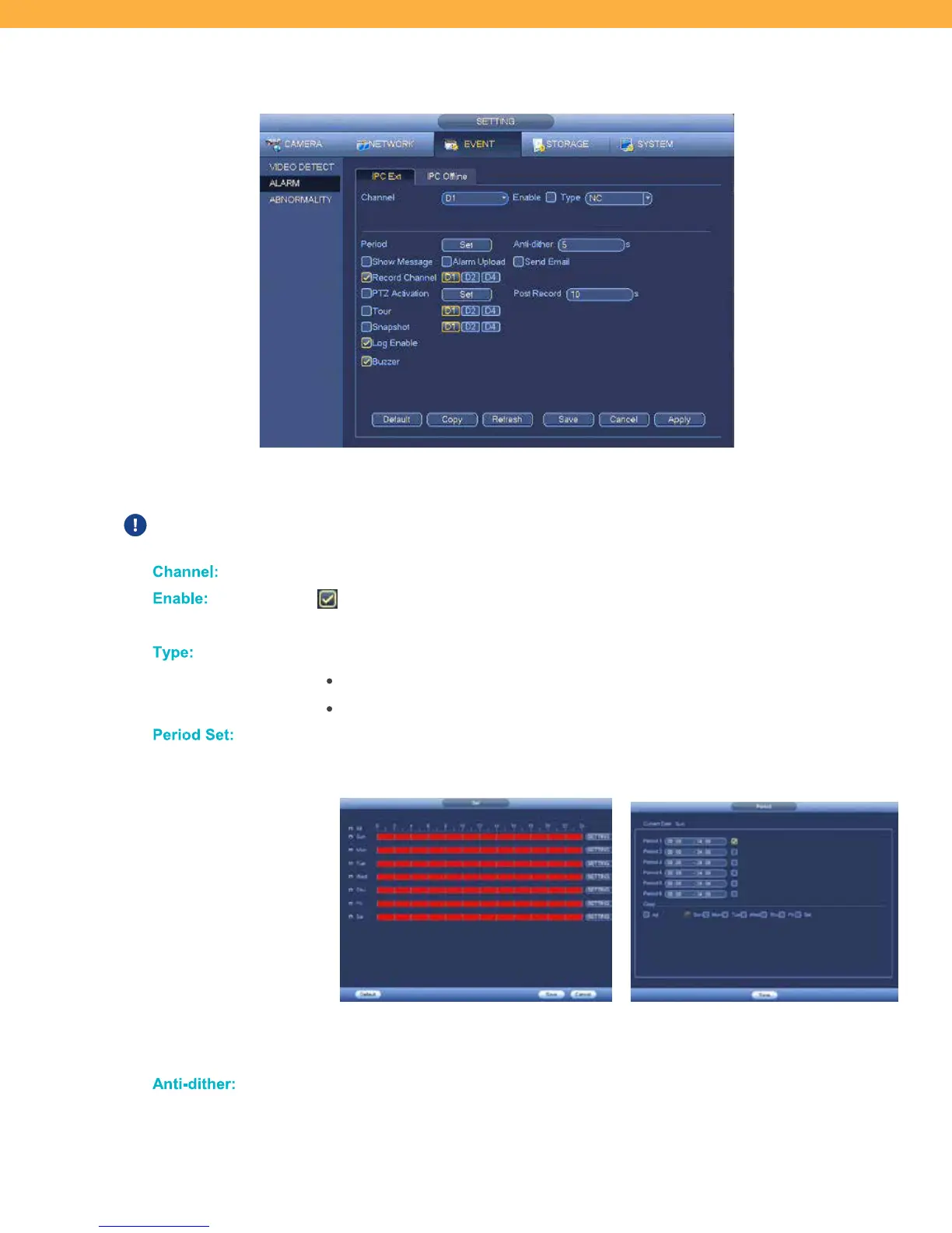When selected the alarm is enabled and will sound when the selected Channel