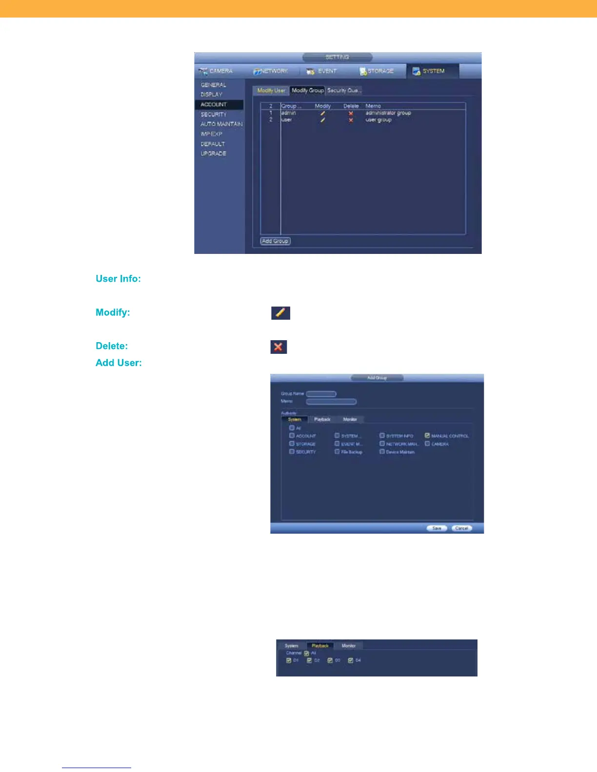 Playback & Monitor: Select Channels (Cameras) the new user will be able to