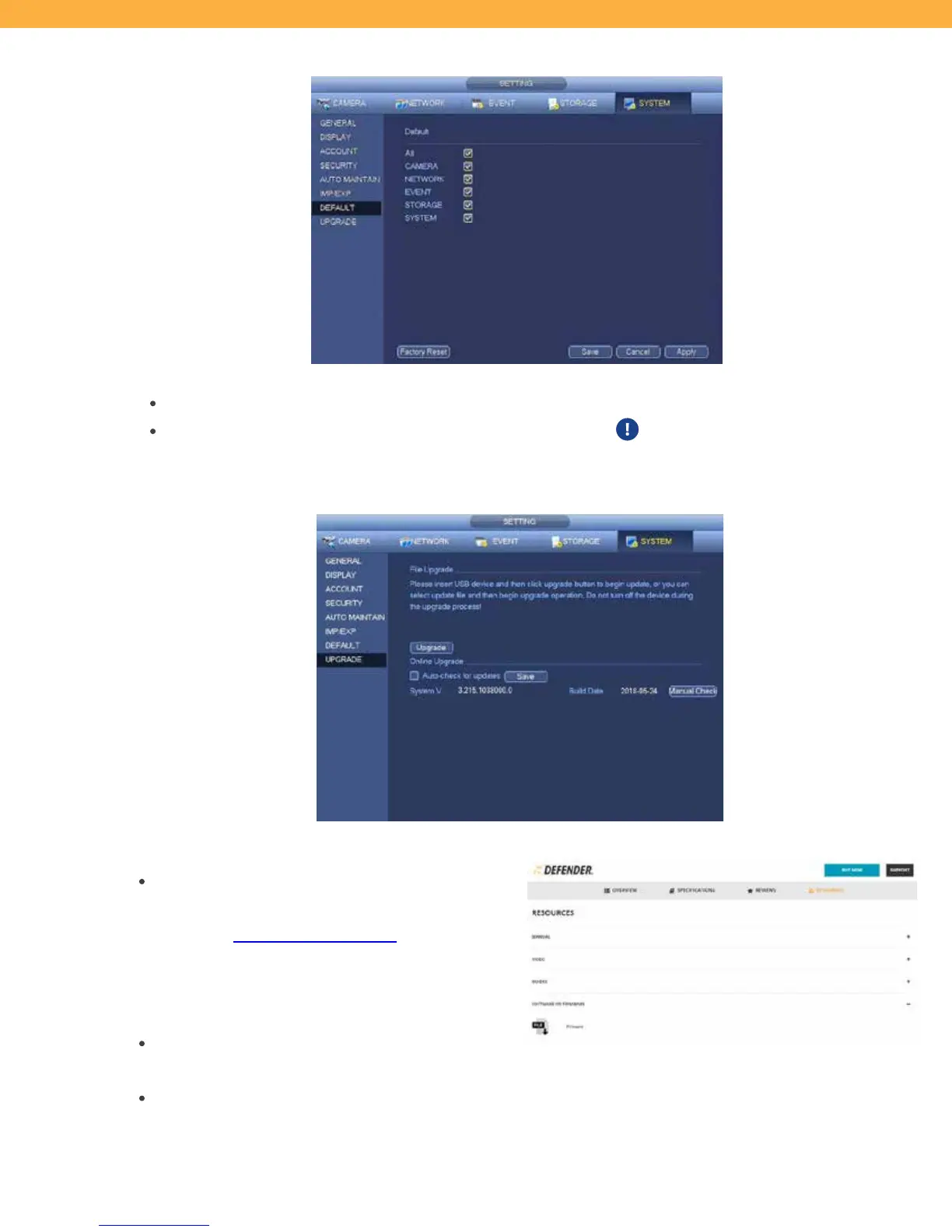 This screen allows you to reset any menu (all features) or the system to default settings.
