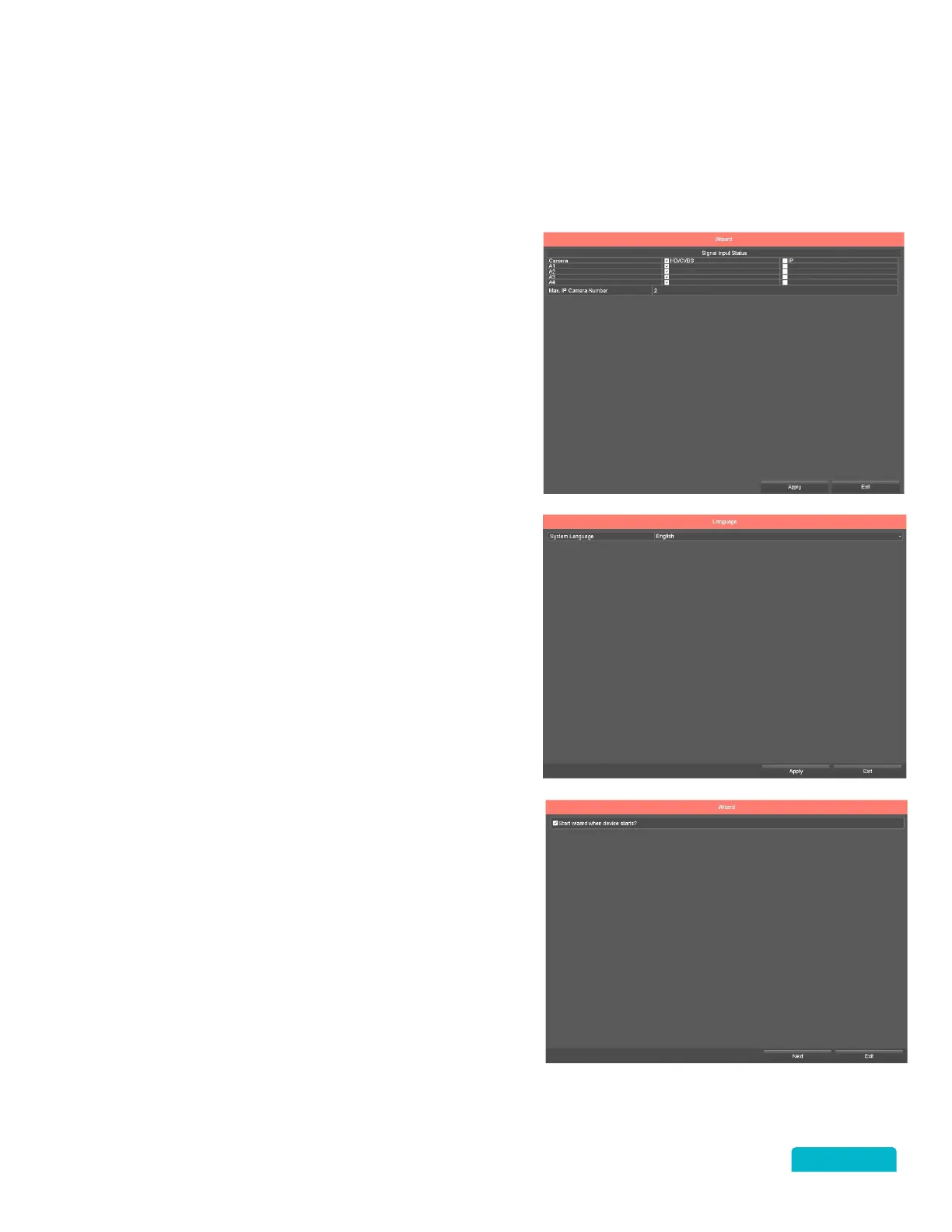 The Setup Wizard will take you through a series of basic setup screens to get you started. Once the system