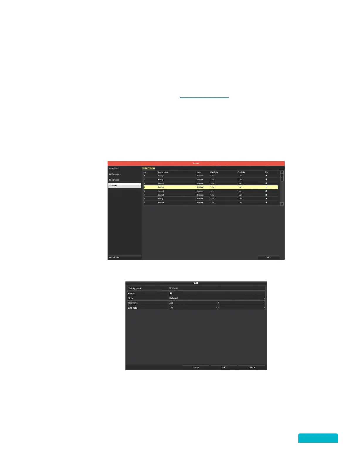 system will stop recording during the dates/times entered and will resume when the holiday is over.