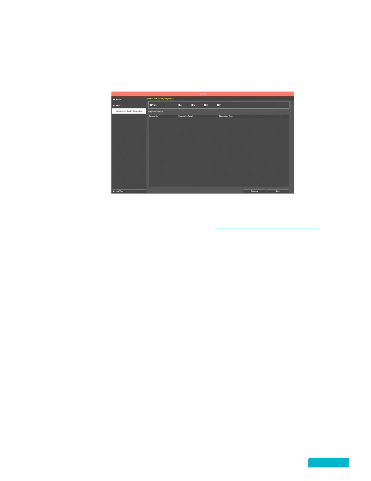 This feature allows you to run a video quality diagnostic manually on any or all cameras connected to the