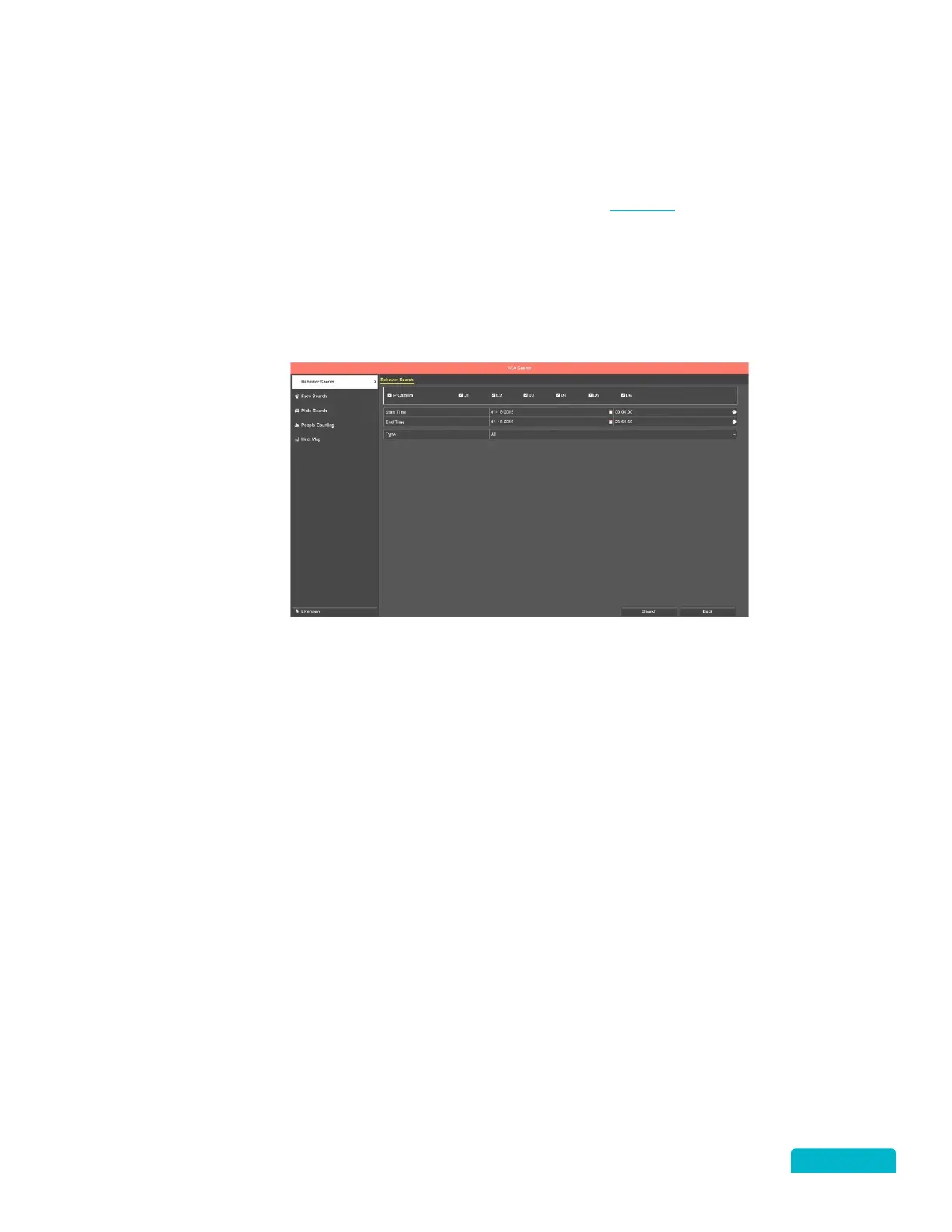 Use this screen to search events that have been triggered as a result of a line crossing, object removal,