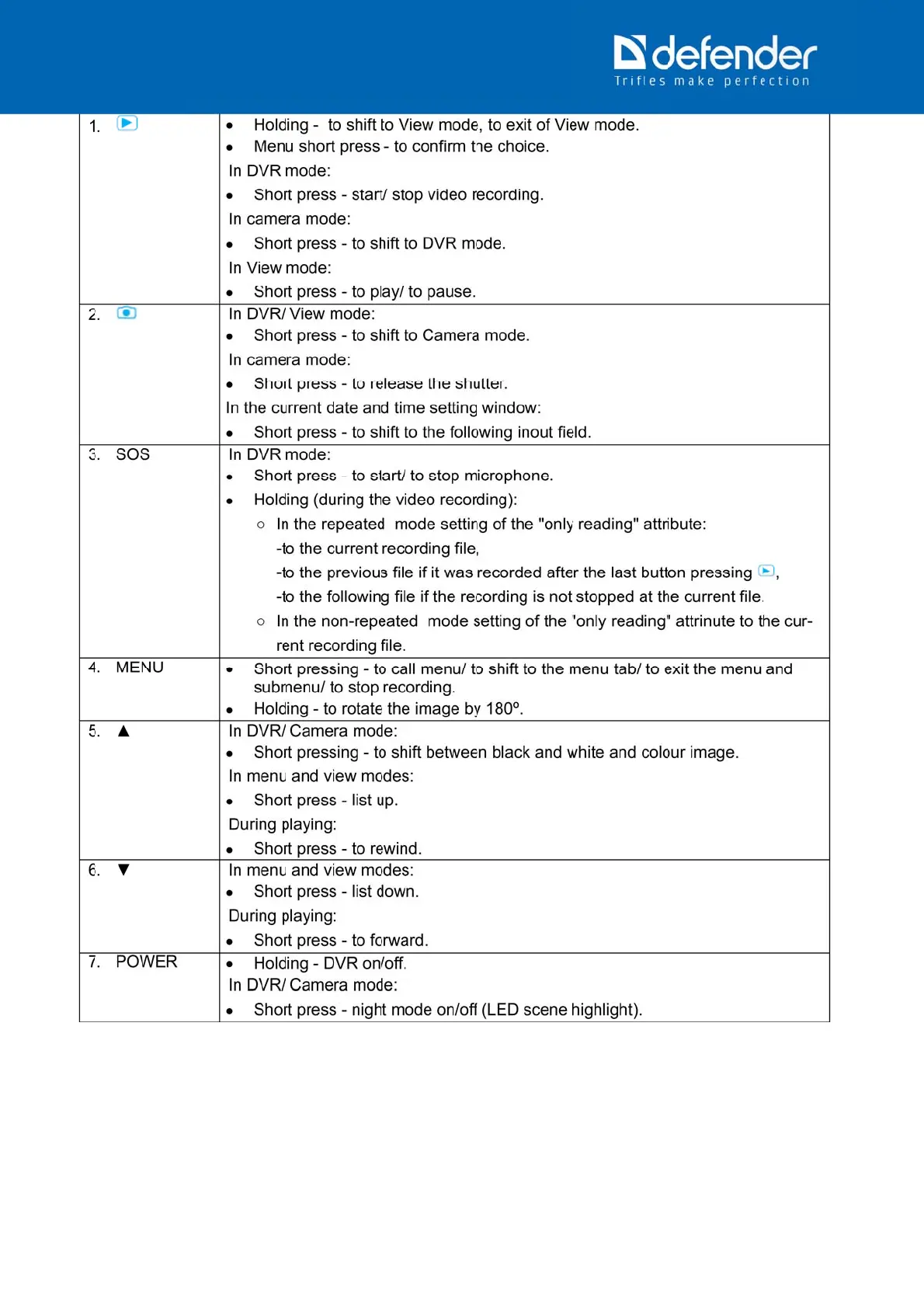 Defender 63222 - Operation Modes