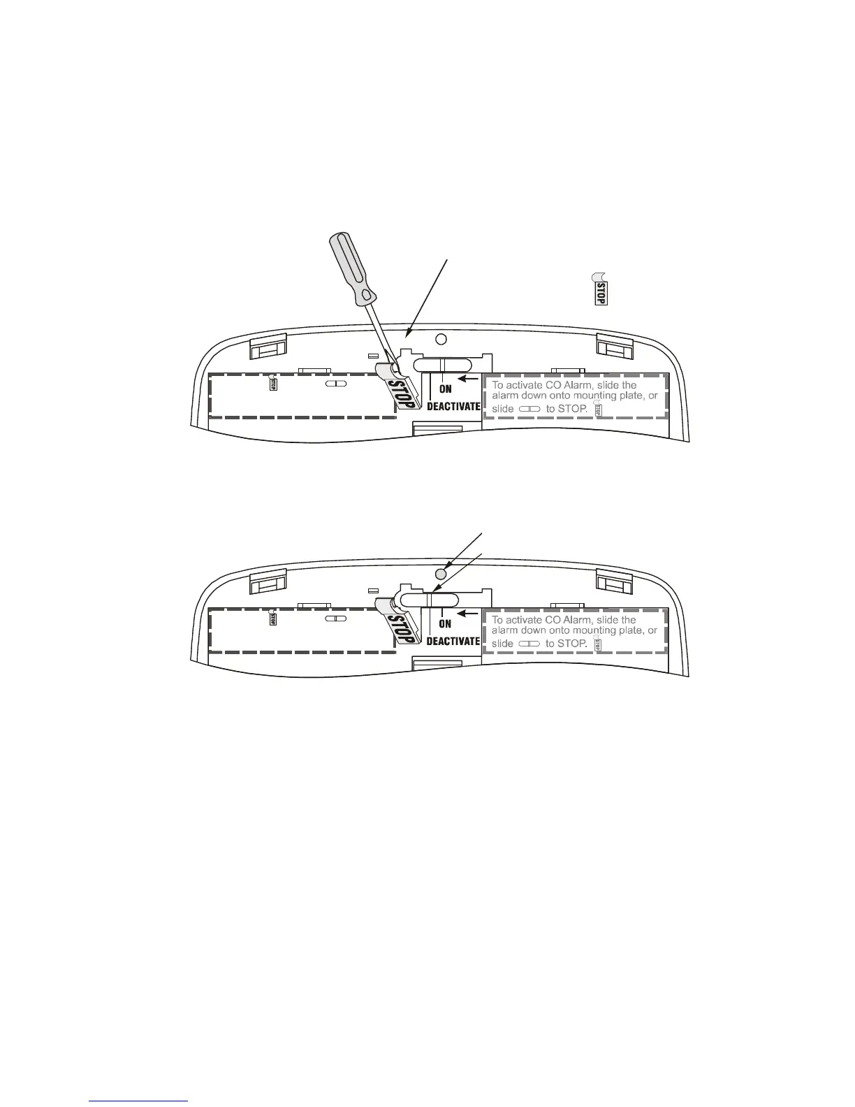 top center of the alarm, and slide the alarm up and off the mounting plate.