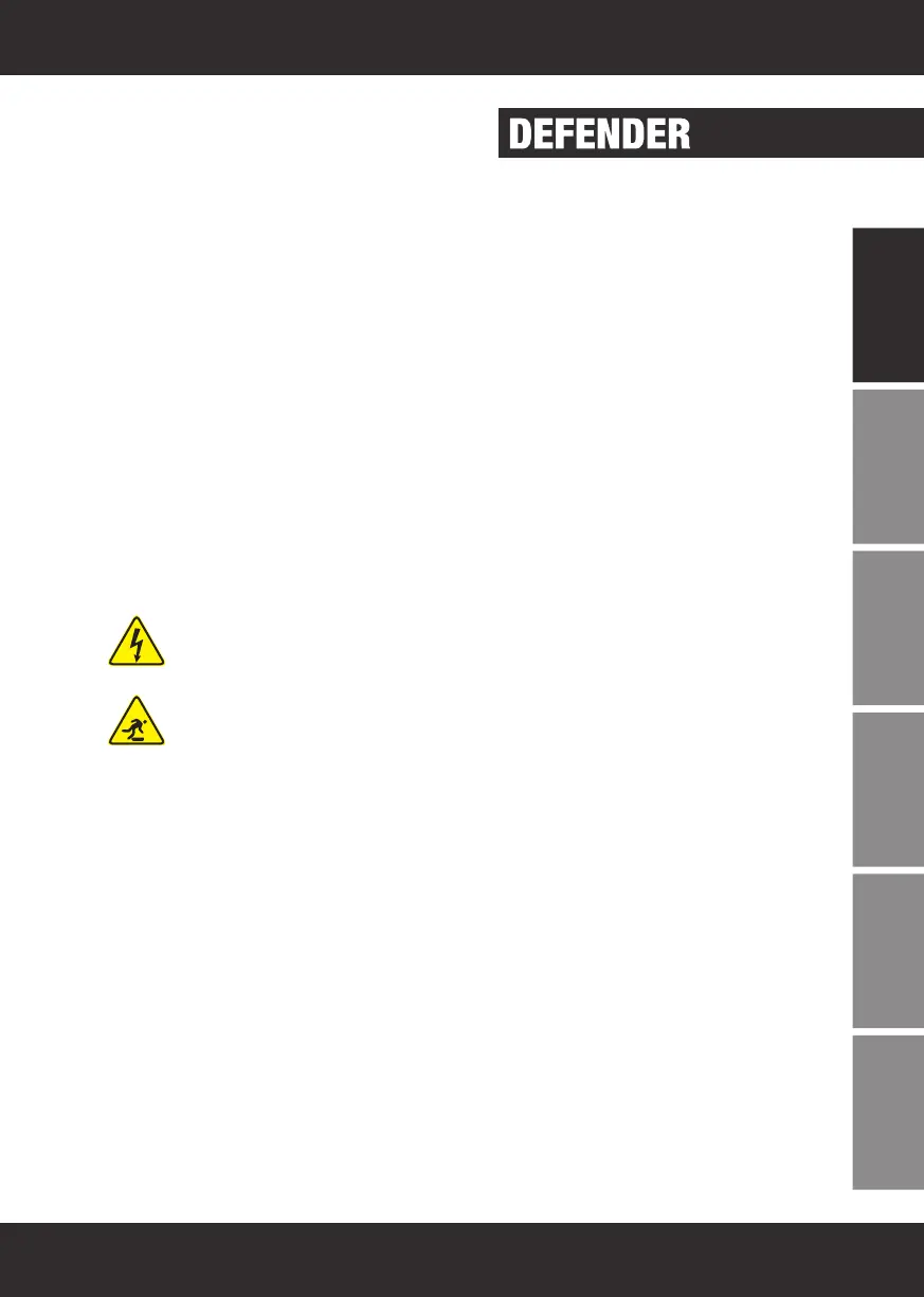 • Do not modify the product in ANY way. Modifications to the DEFENDER