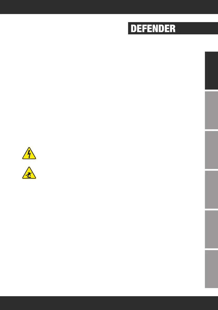 • Do not modify the product in ANY way. Modifications to the DEFENDER