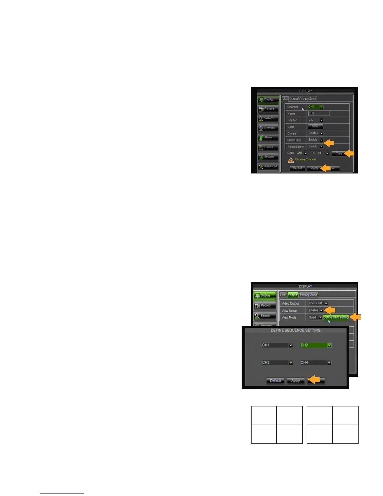 1. Select the COPY drop down list and choose a camera number.