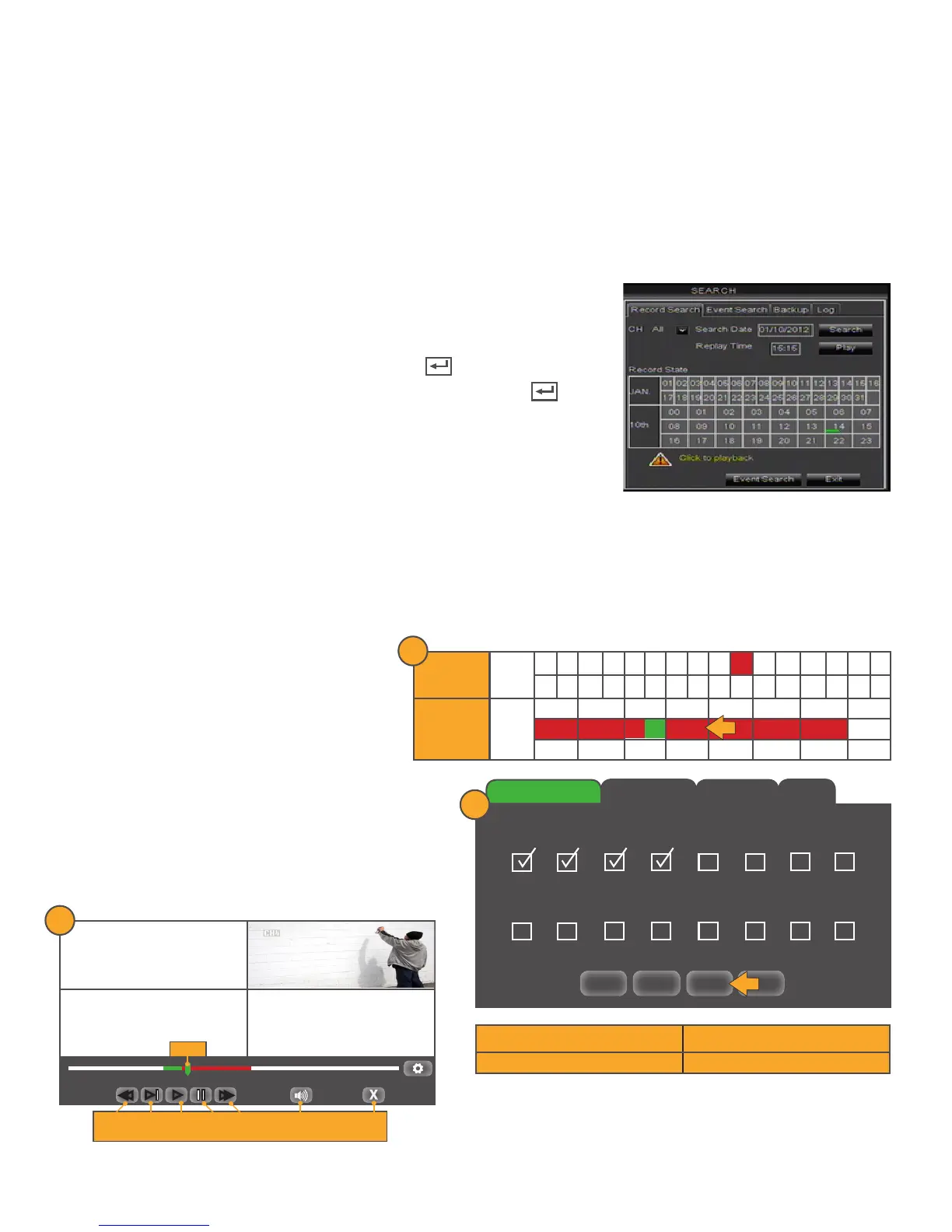• The days and times that have Motion/Alarm recorded footage are RED in the time schedule.