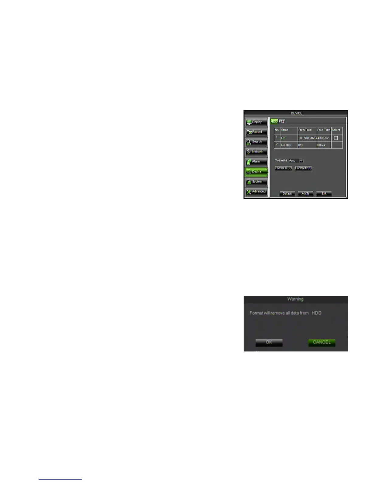 Formatting the HDD erases all recorded video and audio on your HDD.