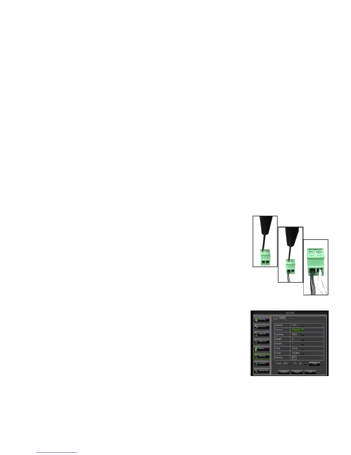 entered manually into the DVR so that the DVR recognizes your PTZ camera and all its functions.