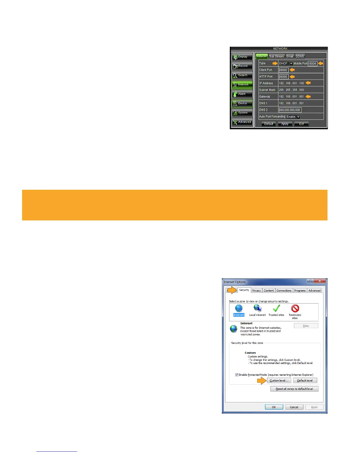 Every computer that is accessing the DVR will need to be configured to download and run ActiveX controls.