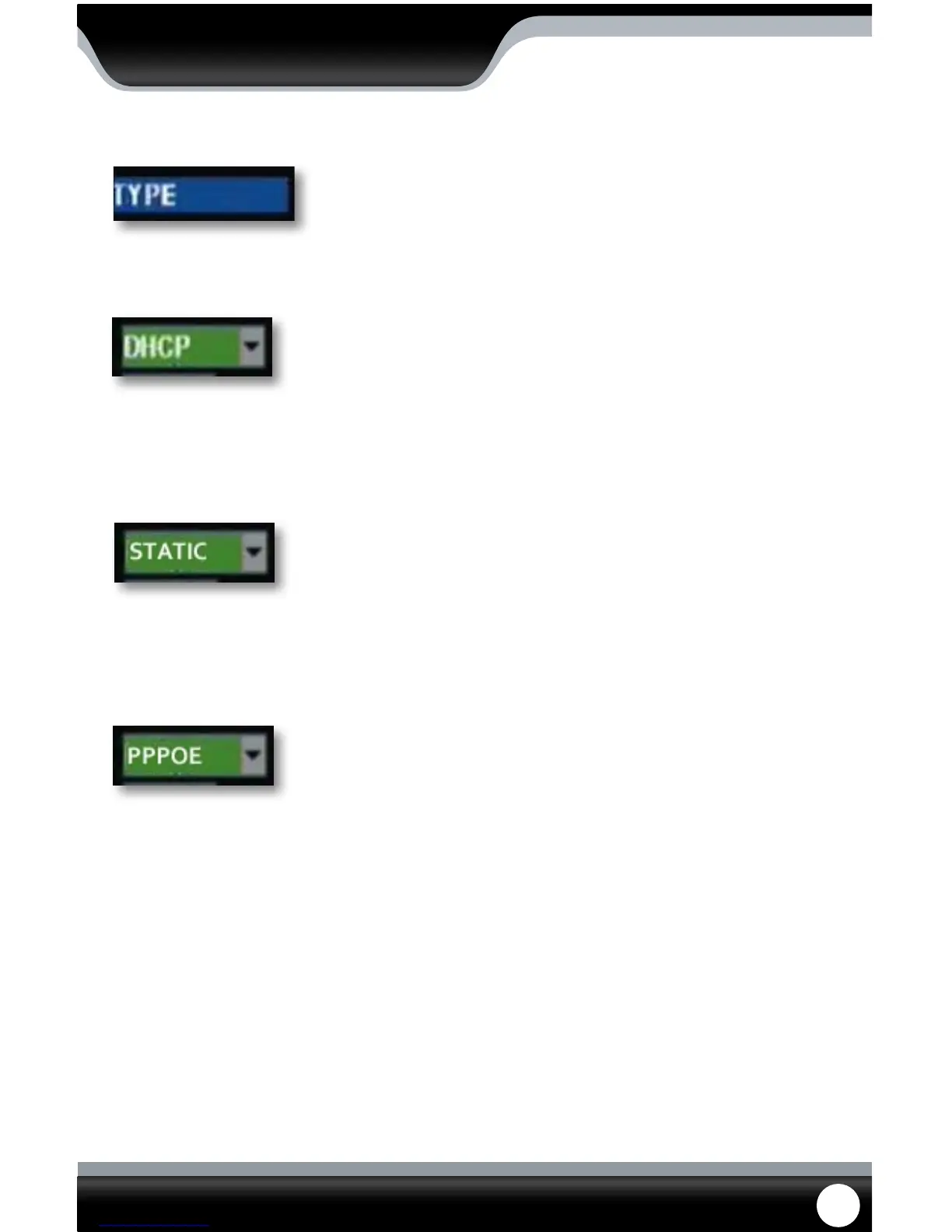 Determines how the DVR will acquire an IP address; DHCP, Static or PPPoE.