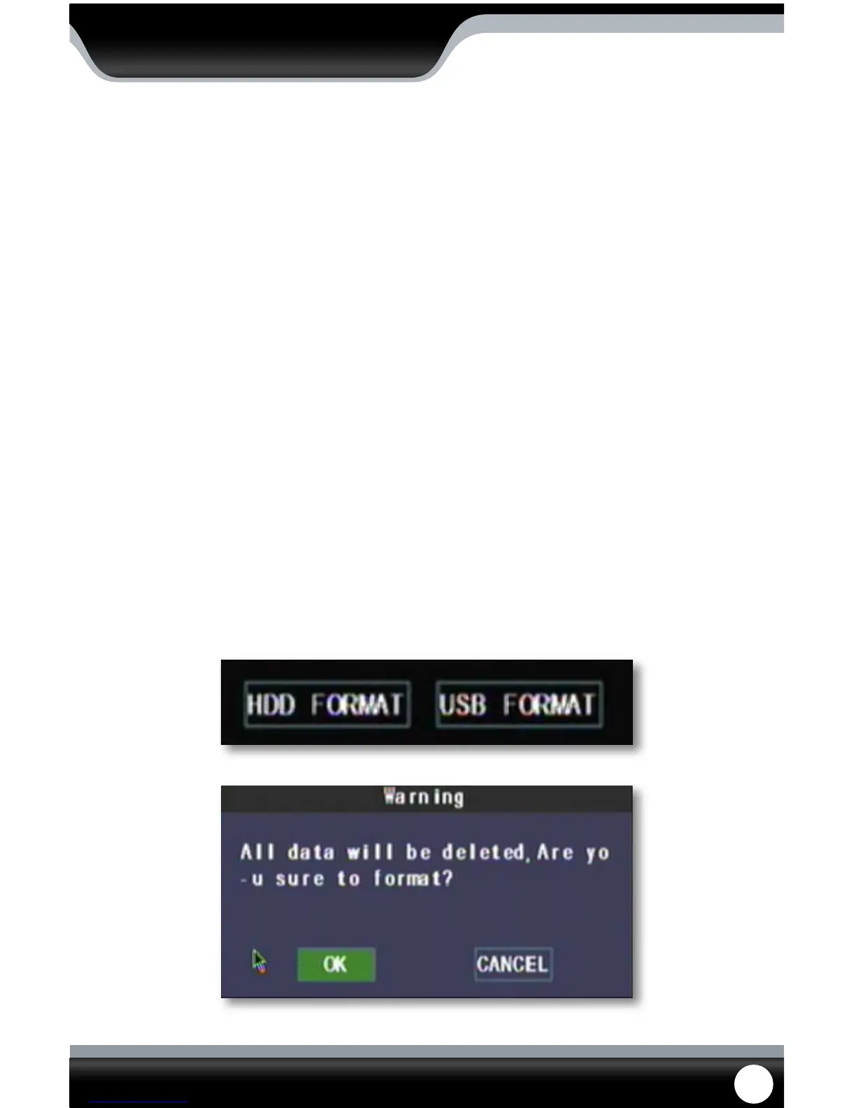3. Select “OK” to format the HDD or “cancel” to prevent formatting.