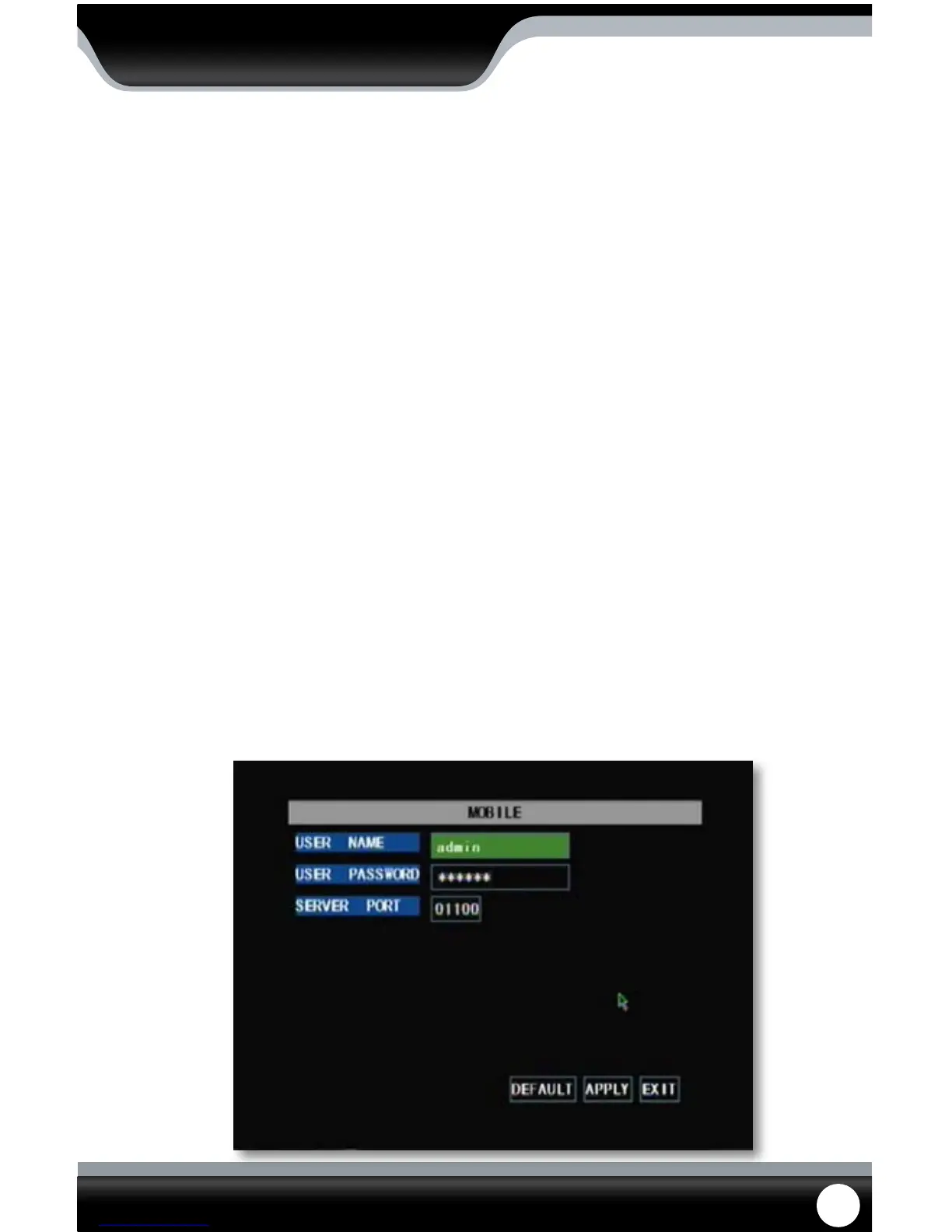 setup menu allows you to input the user name and password you would be using to view your DVR through your