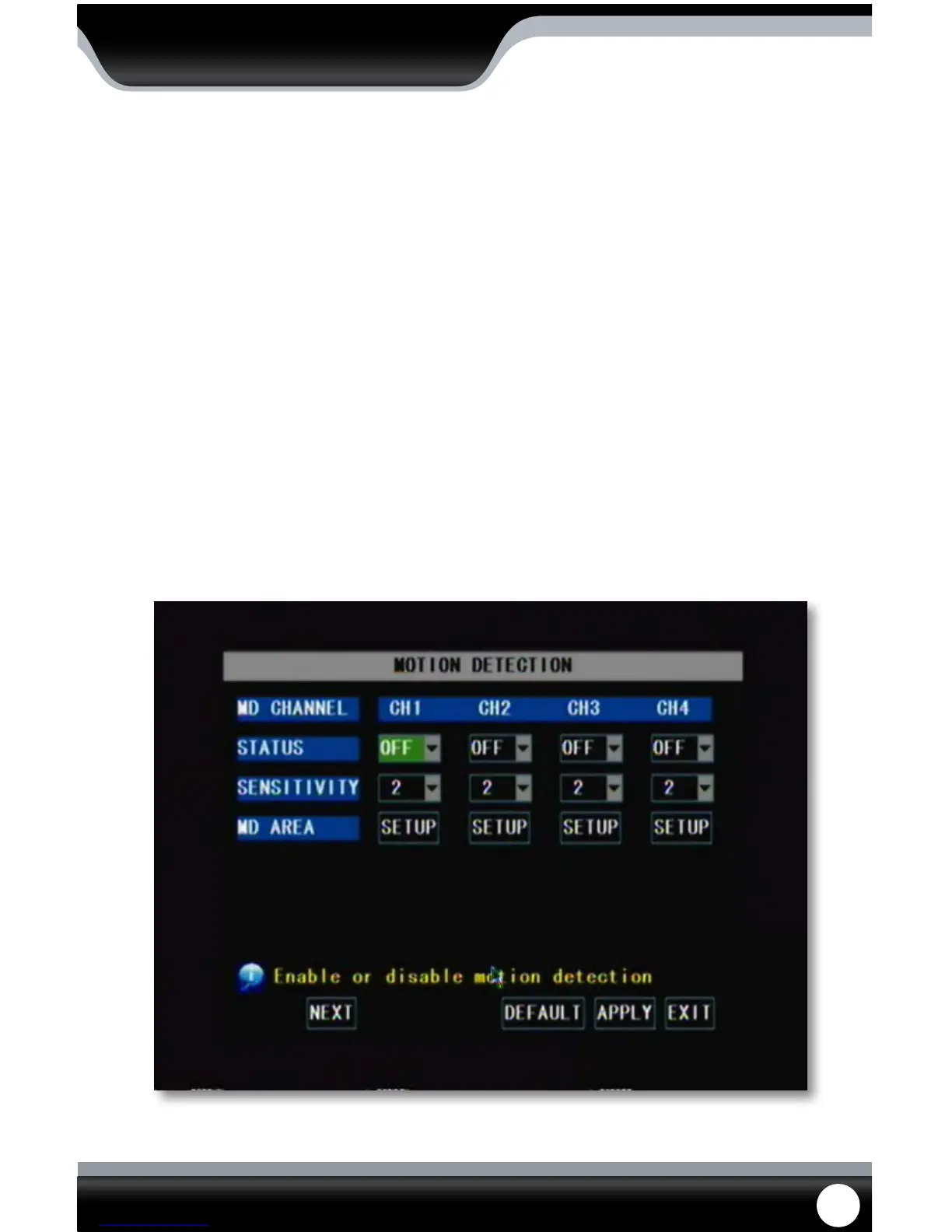 2. Select “on” or “o” from the drop down list to turn the motion detection on or o for that camera.