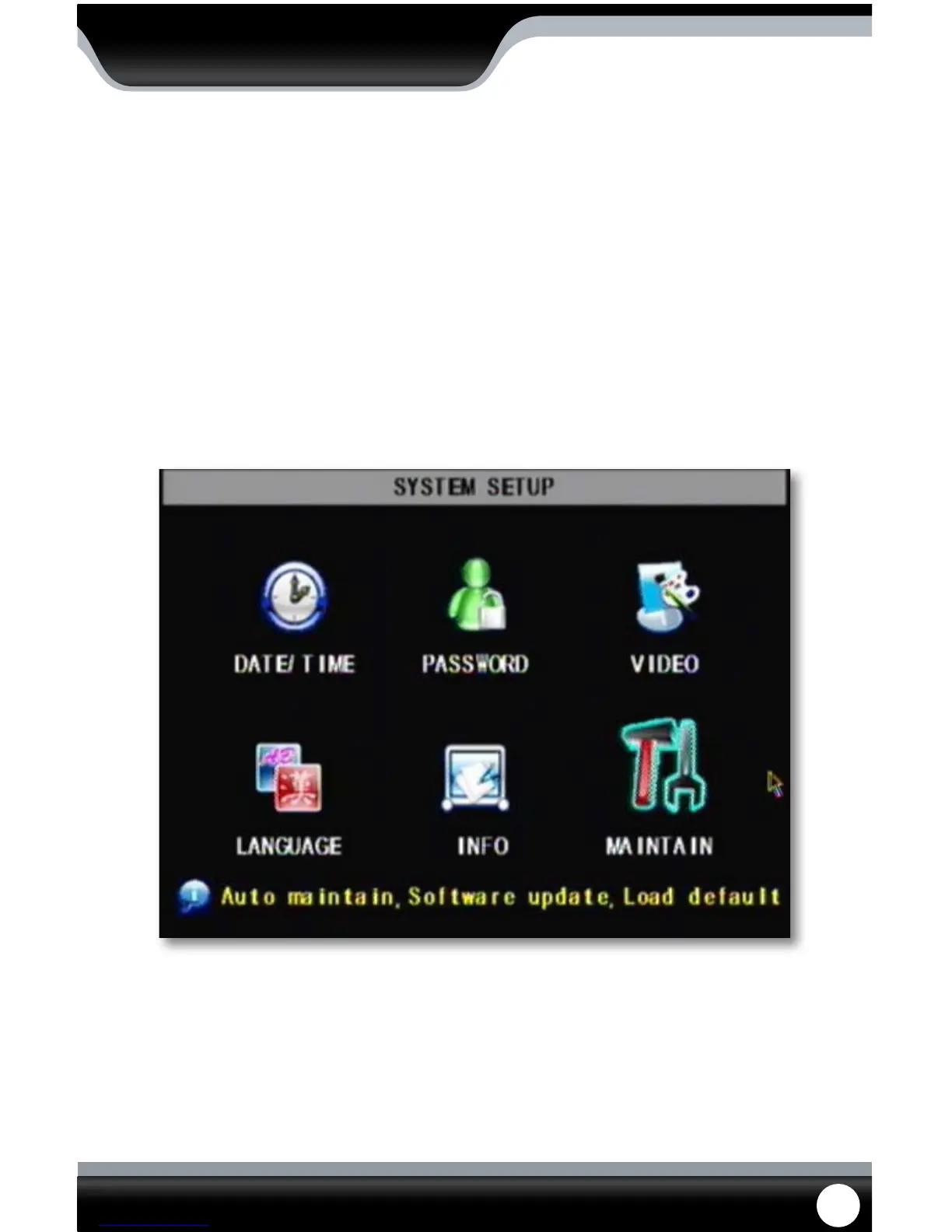 • Maintenance: Allows you to adjust auto maintenance, reboot system, update system and re-load all