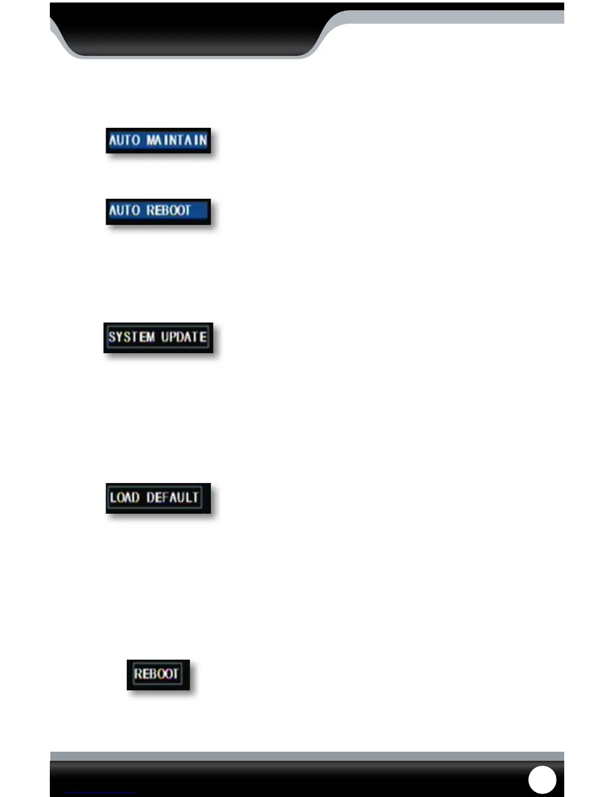 system reboot, manually reboot the system as well as update the system with a USB device.