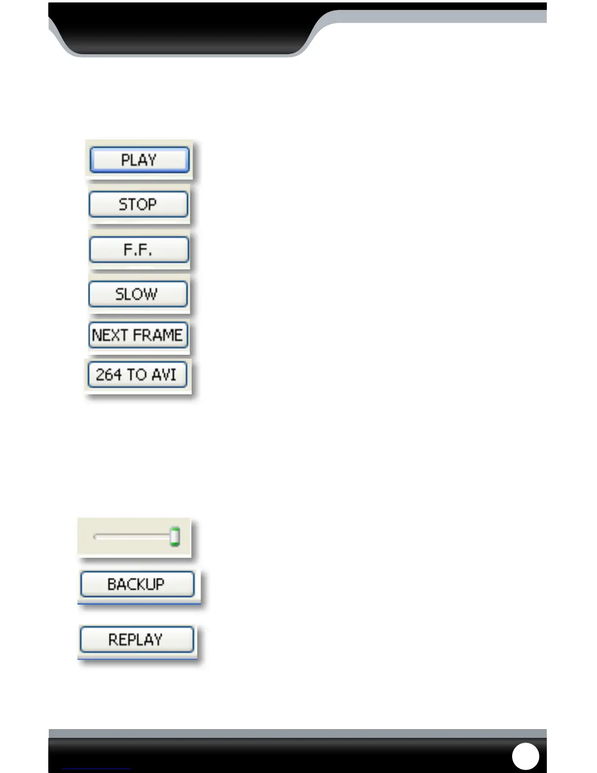 Stop: Pressing this will stop the footage from playing and a blank