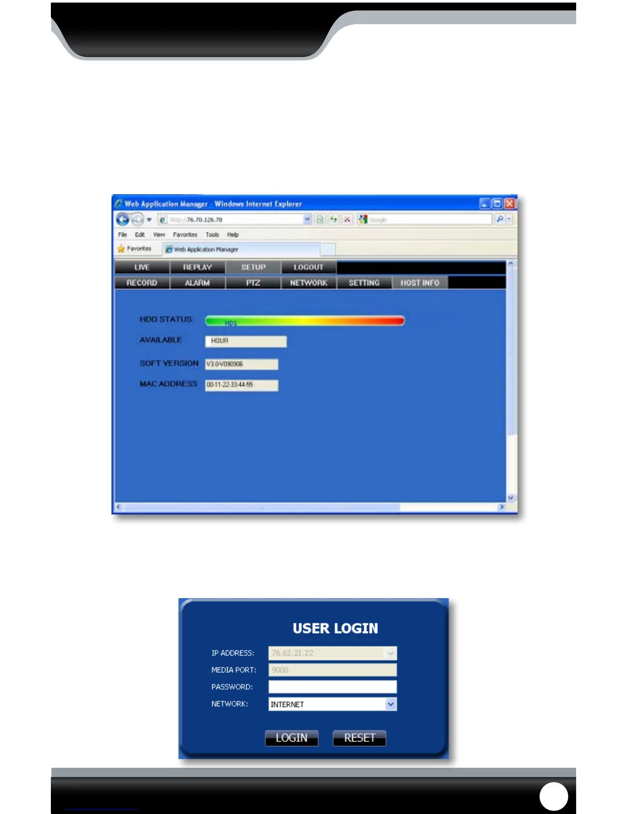 Clicking on this tab logs you out of the online software and DVR viewing. When this tab is clicked the software will