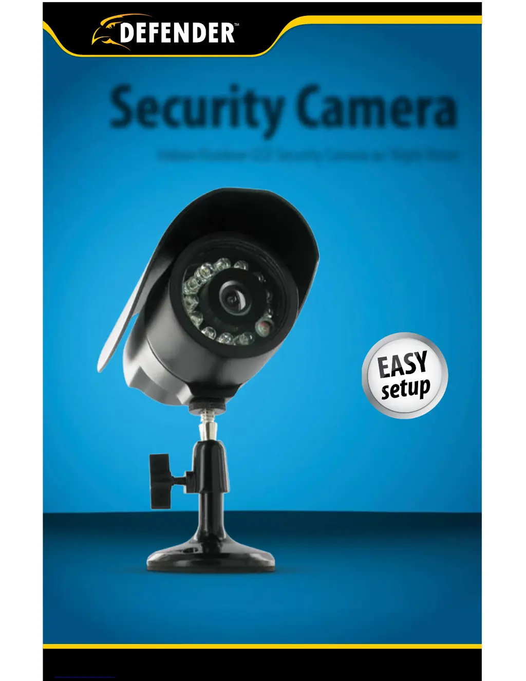 If you're not getting a picture or signal from your Defender Security Camera, here are a few things to check: * Ensure your TV/monitor is on the correct video input channel. * If connected to a VCR/DVR, verify it's properly connected to your TV/monitor. * Check all connections to ensure they are secure. * Confirm the power supply is working, and the camera is powered up.