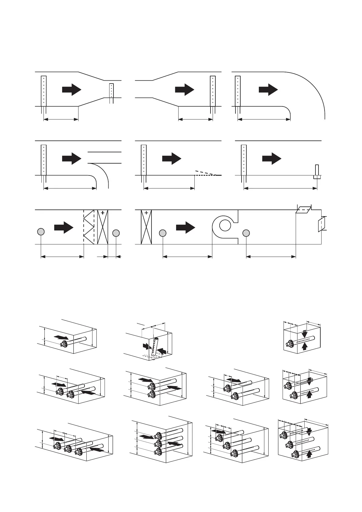 senkrecht zum Luftstrom befinden (bei horizontalem Einbau sind die Ausblasöffnun-