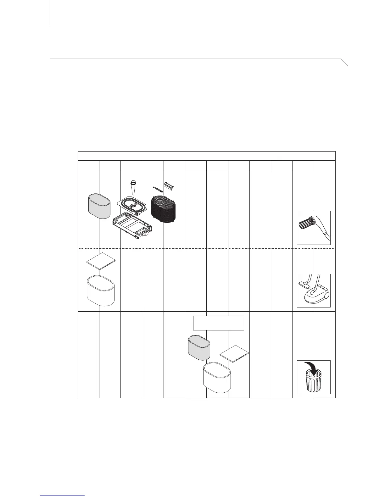 Please consider the intervals for cleaning and replacing the individual components in the table below