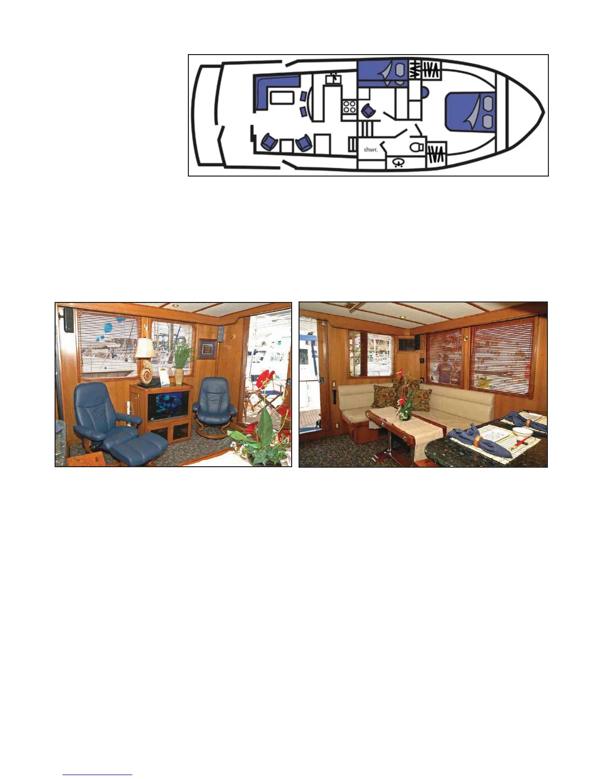 doorways). The main entry access is the large door at the aft end of the saloon, which opens