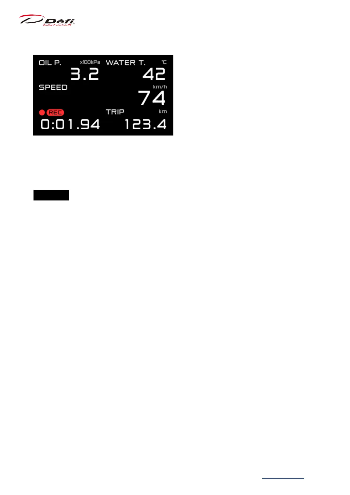 This mode records the driving data for up to 3 minutes. During the record mode, [●REC] is