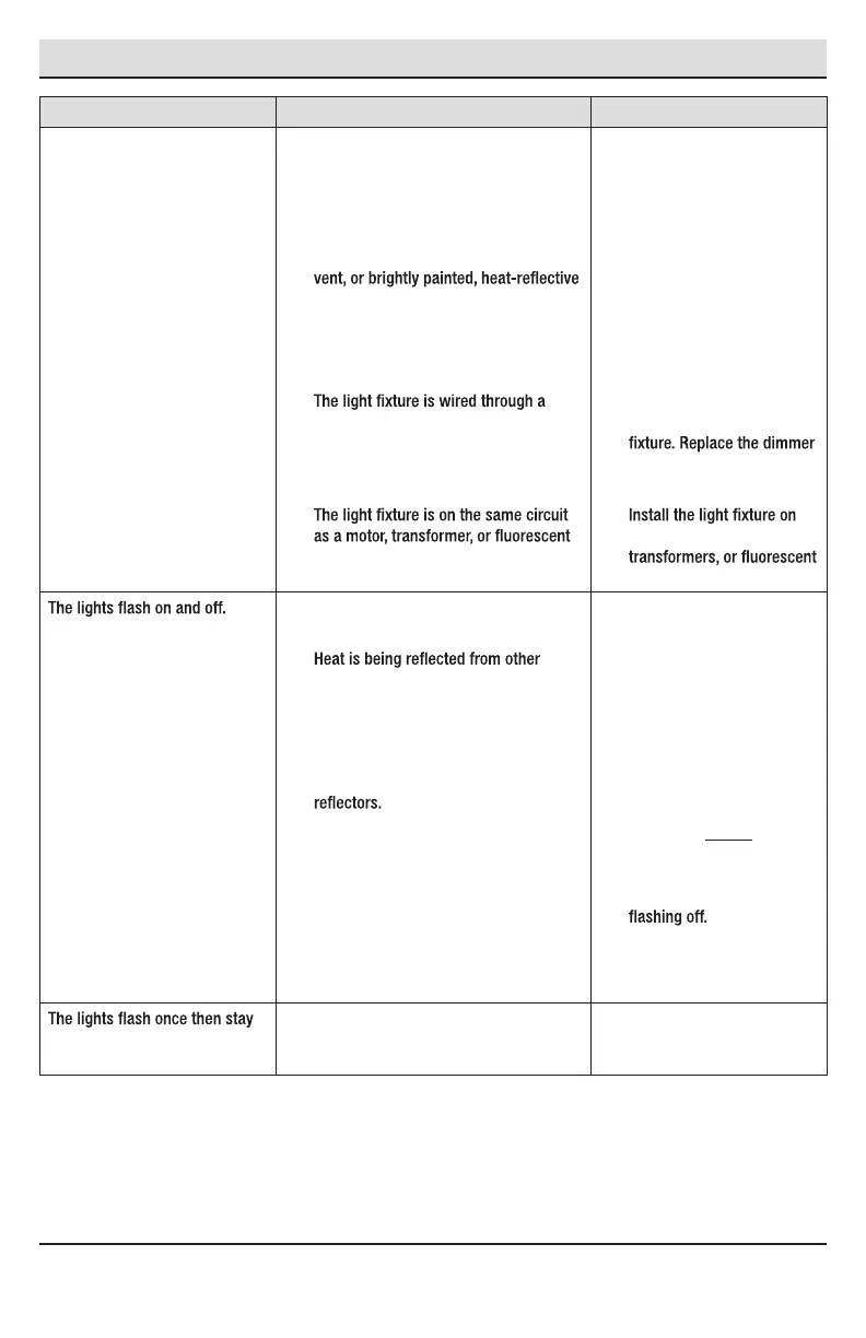 The lights stay on continuously. □ A bulb is positioned too close to the