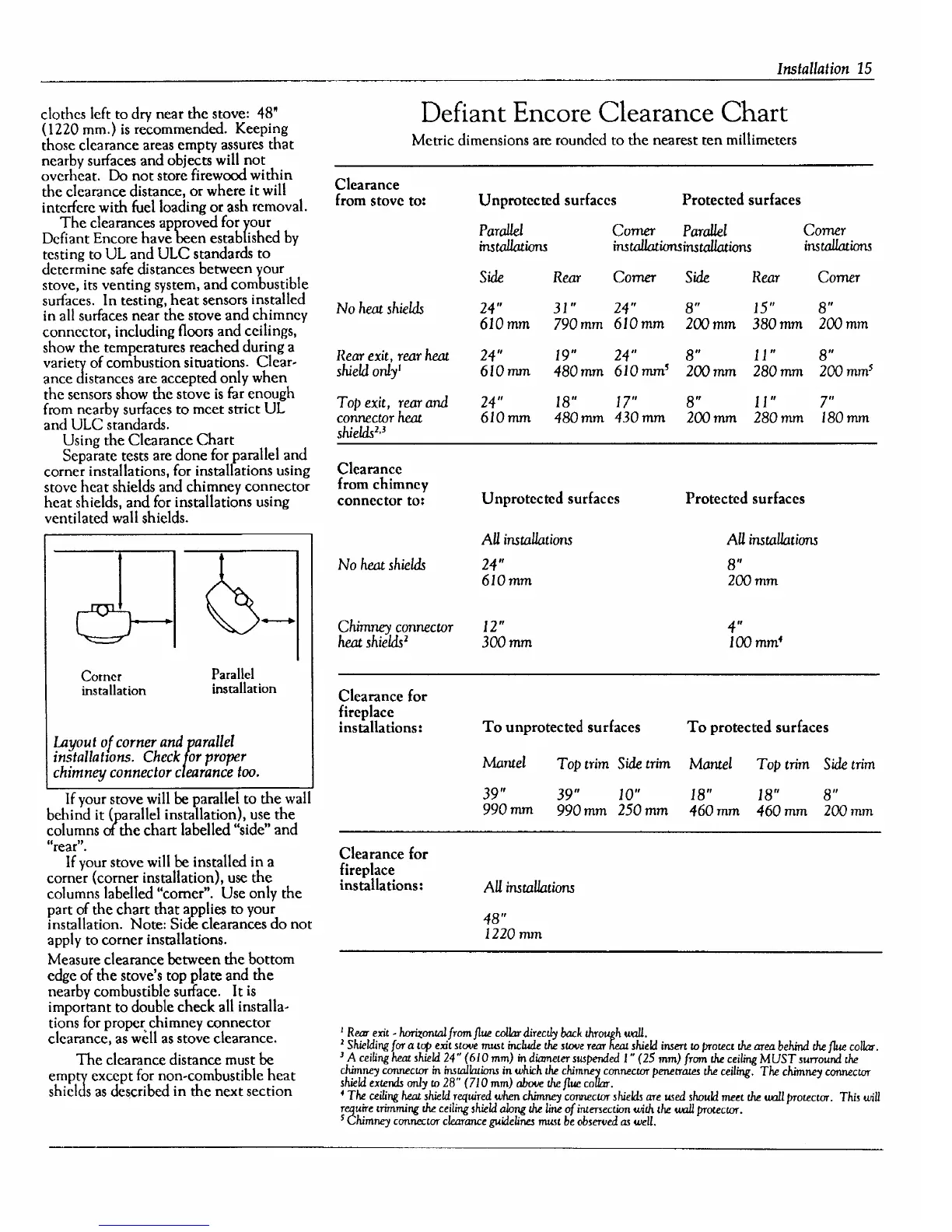 Defiant Encore 2140 - Defiant Encore Clearance Chart