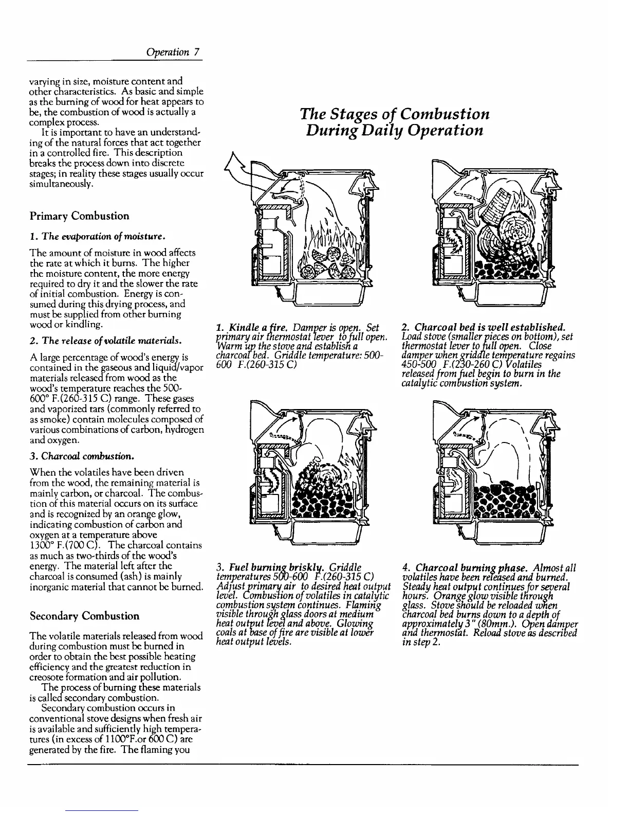 Defiant Encore 2140 - Primary Combustion; The Explanation of Moisture; The Release of Volatile Materials; Charcoal Combustion