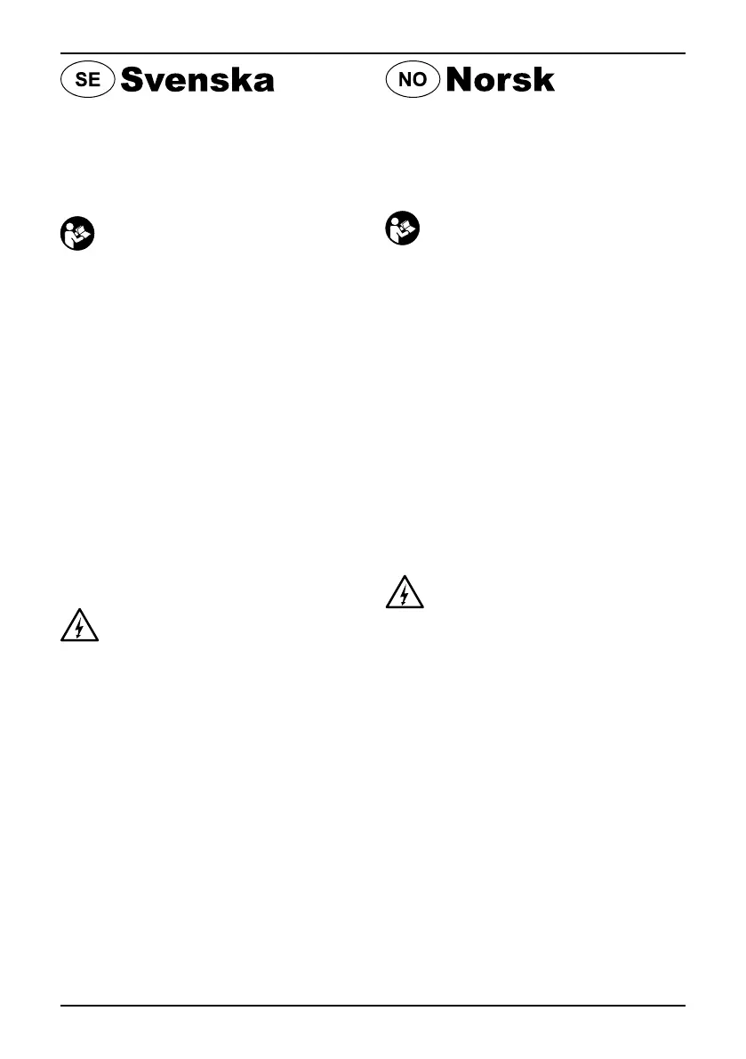instruktionerna inte följts kan orsaka elstöt, brand och/eller