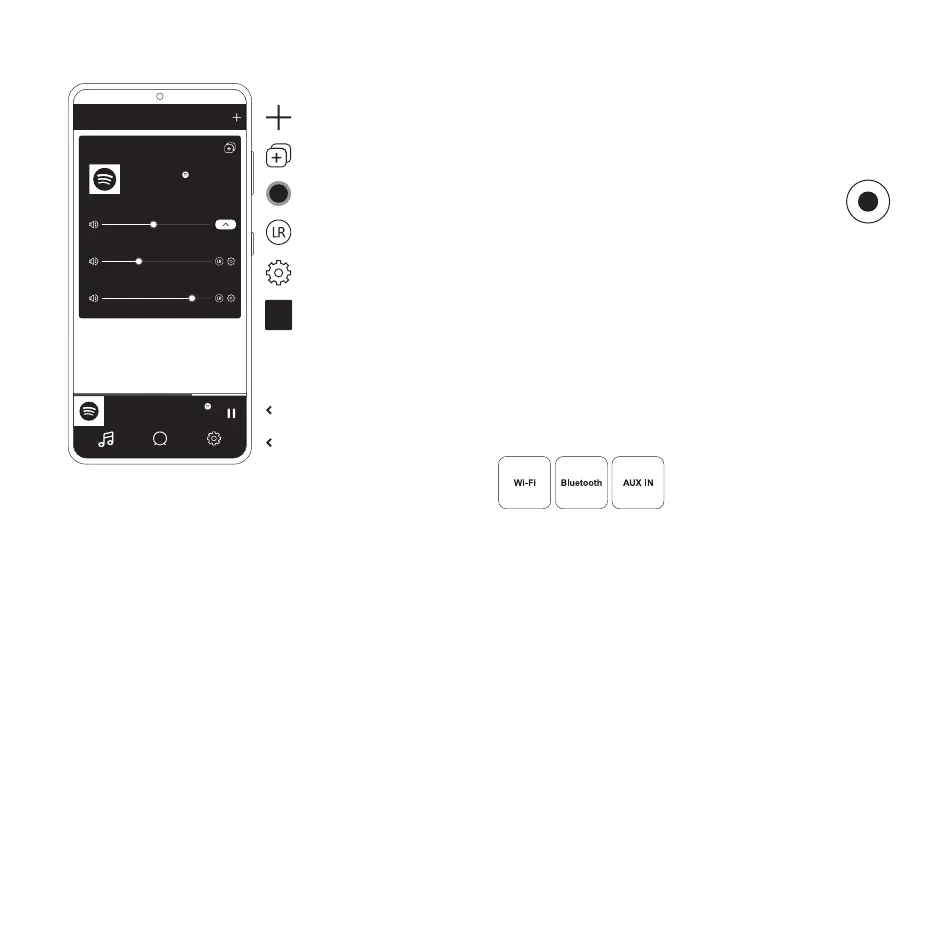 Để chuyển đổi giữa Wi-Fi, Bluetooth và AUX IN, hãy nhấn